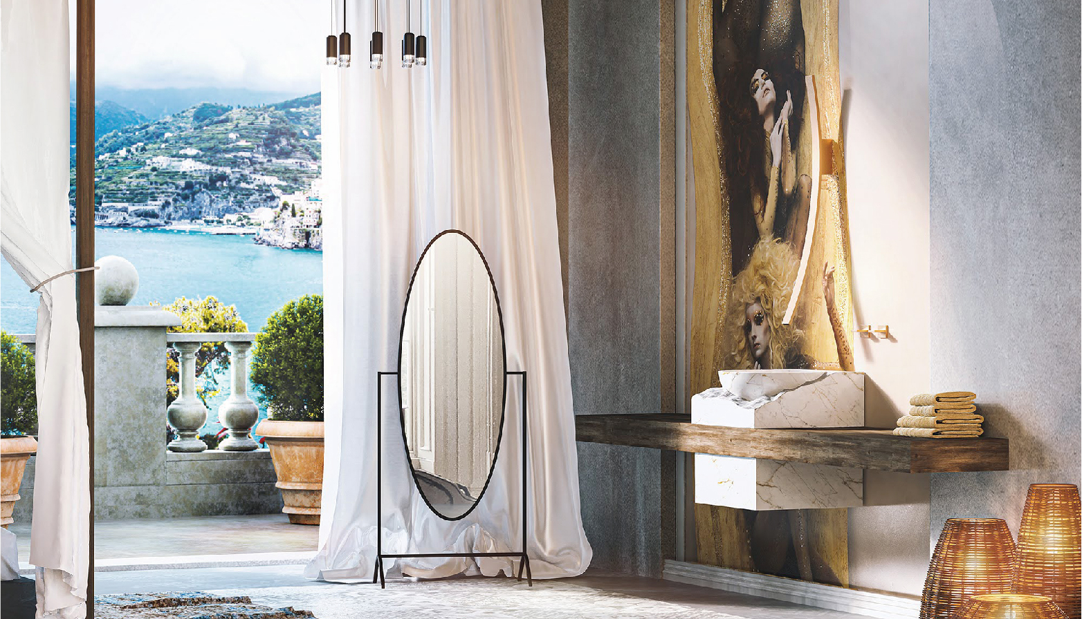 鏡面般的金屬質感,隨著光線微微變化,映照出空間的層次,也讓水與光之間產生細緻的對話。
